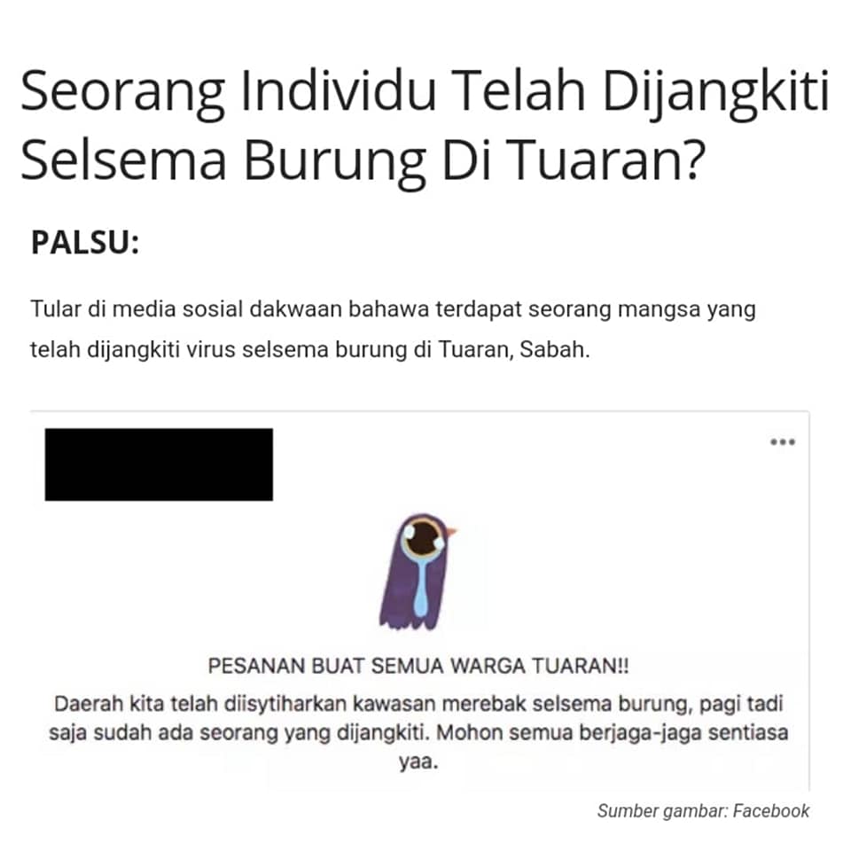 Seorang Individu Telah Dijangkiti Selsema Burung Di Tuaran?