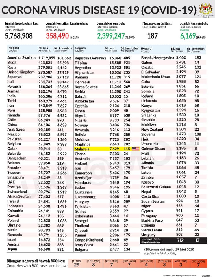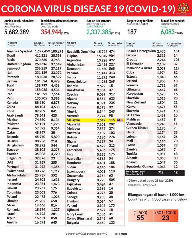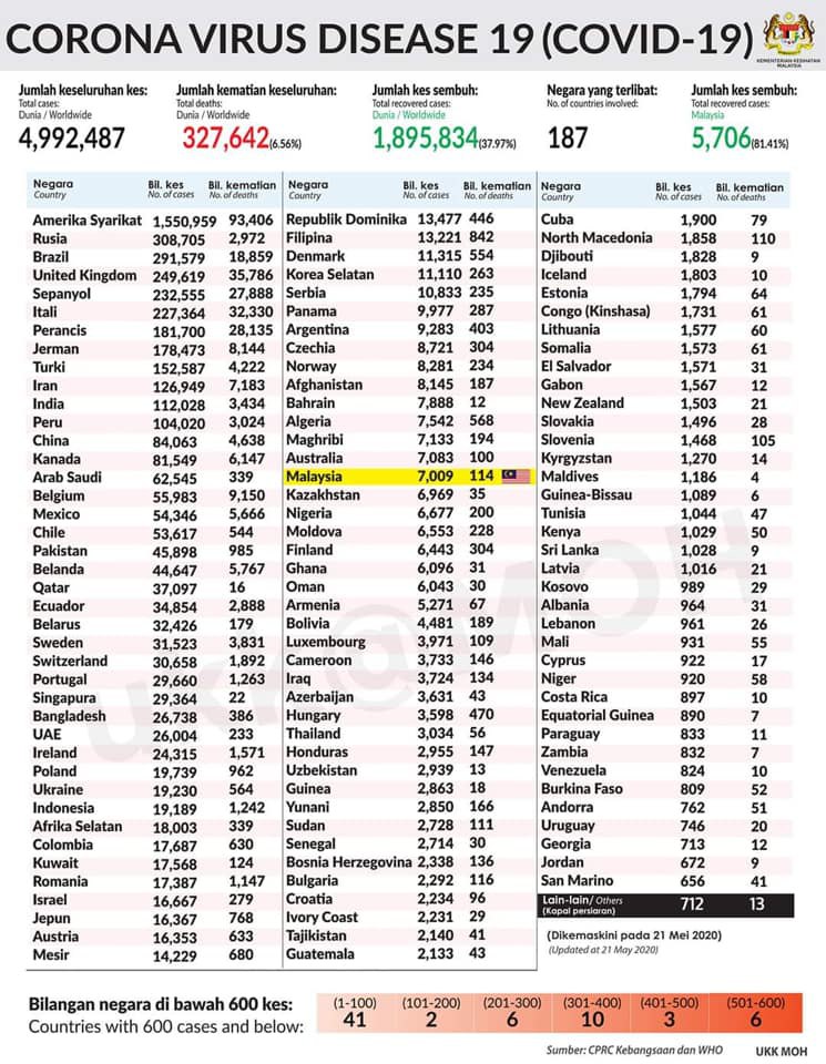 STATUS COVID 19 DI MALAYSIA 21 MEI 2020