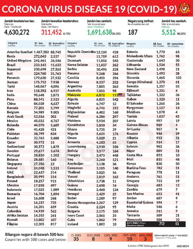 STATUS COVID 19 DI MALAYSIA 17 MEI 2020
