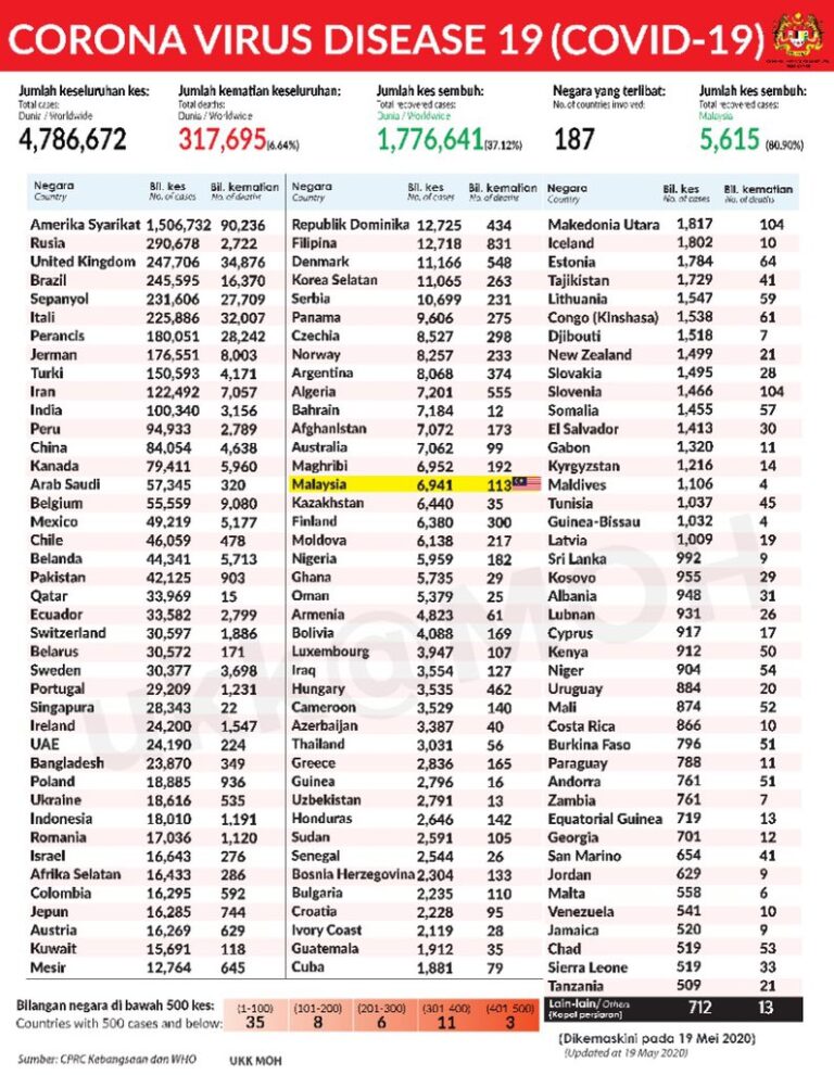 STATUS COVID 19 DI MALAYSIA 19 MEI 2020