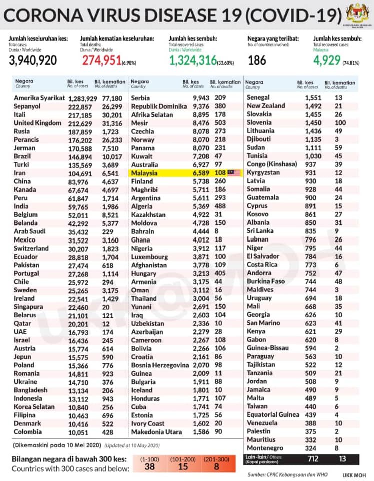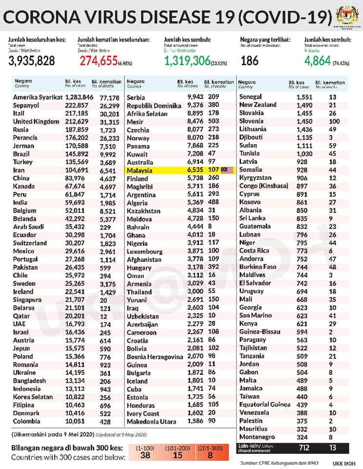 STATUS COVID 19 DI MALAYSIA 9 MEI 2020