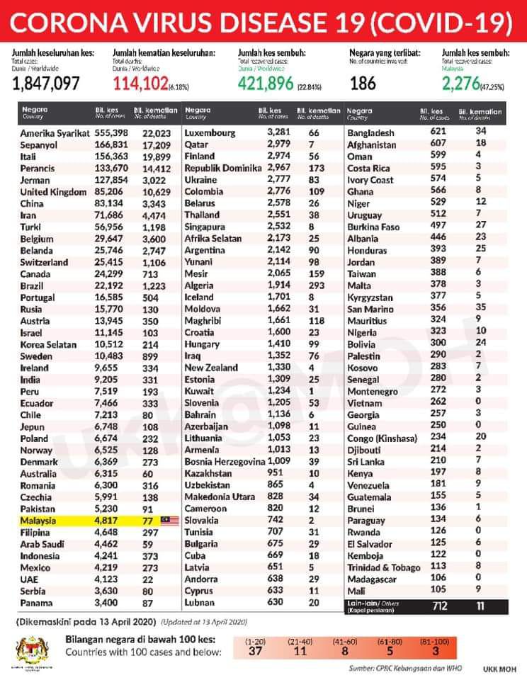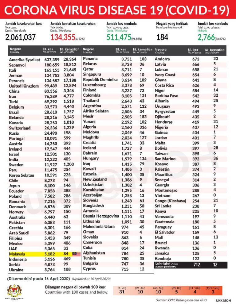 RINGKASAN TERKINI COVID 19 – 15 APRIL 2020