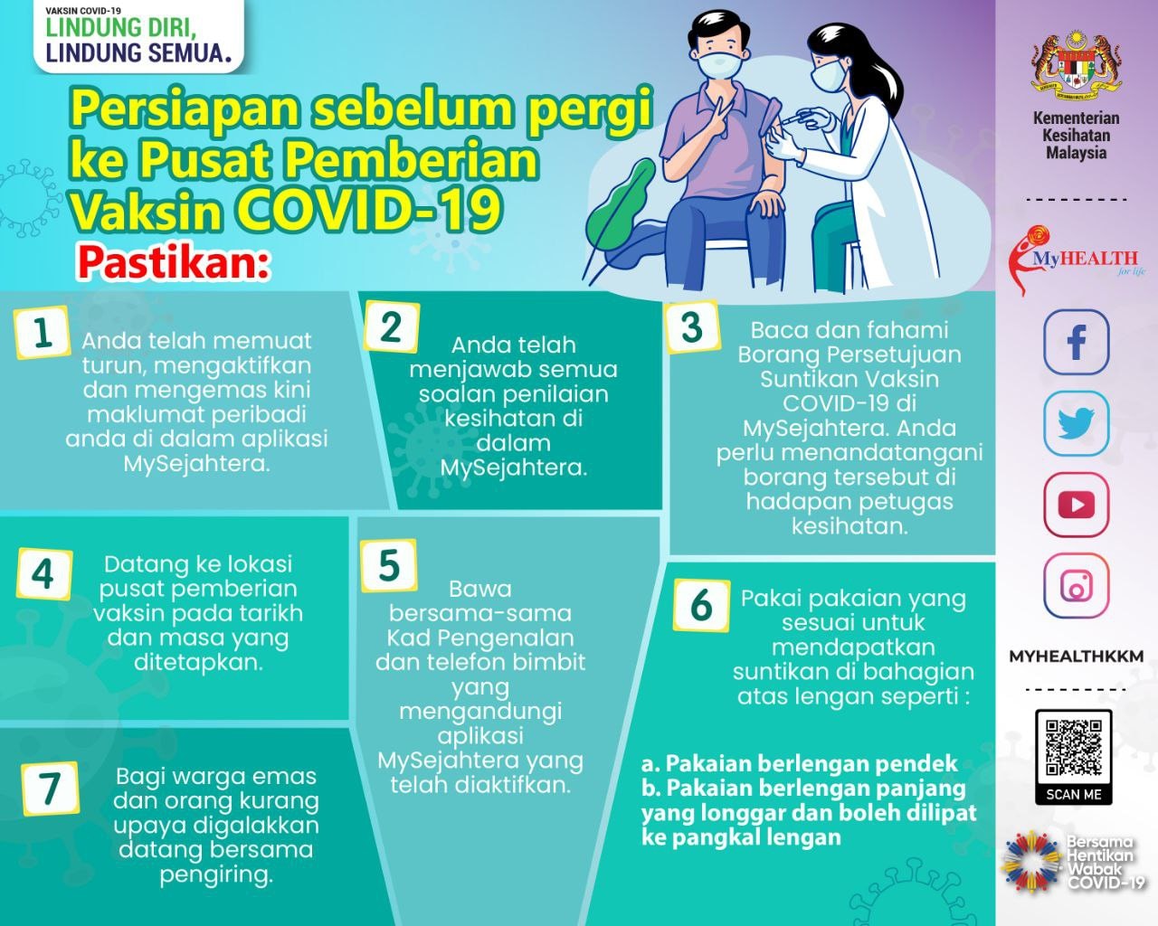 Apabila anda telah mendapat tarikh untuk mendapat vaksinasi COVID-19, ini perkara-perkara yang anda perlu pastikan sebelum pergi ke Pusat Pemberian Vaksin (PPV).