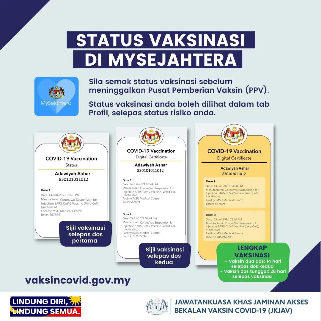 Here is an update for your digital certificate after vaccination. A friendly reminder to all, please check your vaccination status on MySejahtera BEFORE leaving the PPV on your appointment day.