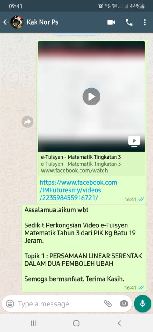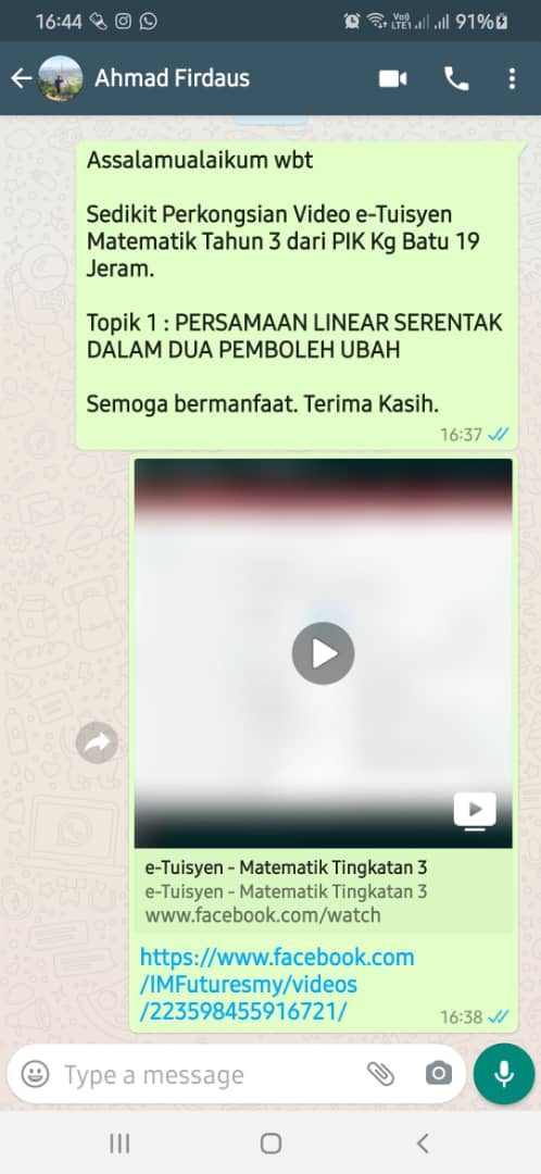 E – PEMBELAJARAN TUISYEN SECARA ATAS TALIAN – SUBJEK MATEMATIK TINGKATAN 3 (MODUL PERSAMAAN LINEAR SERENTAK DALAM DUA PEMBOLEH UBAH)