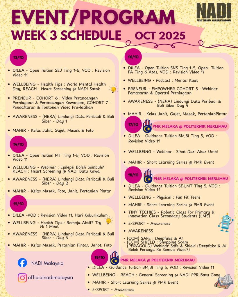 JADUAL PROGRAM DI NADI MINGGU KE 3 OKTOBER 2025