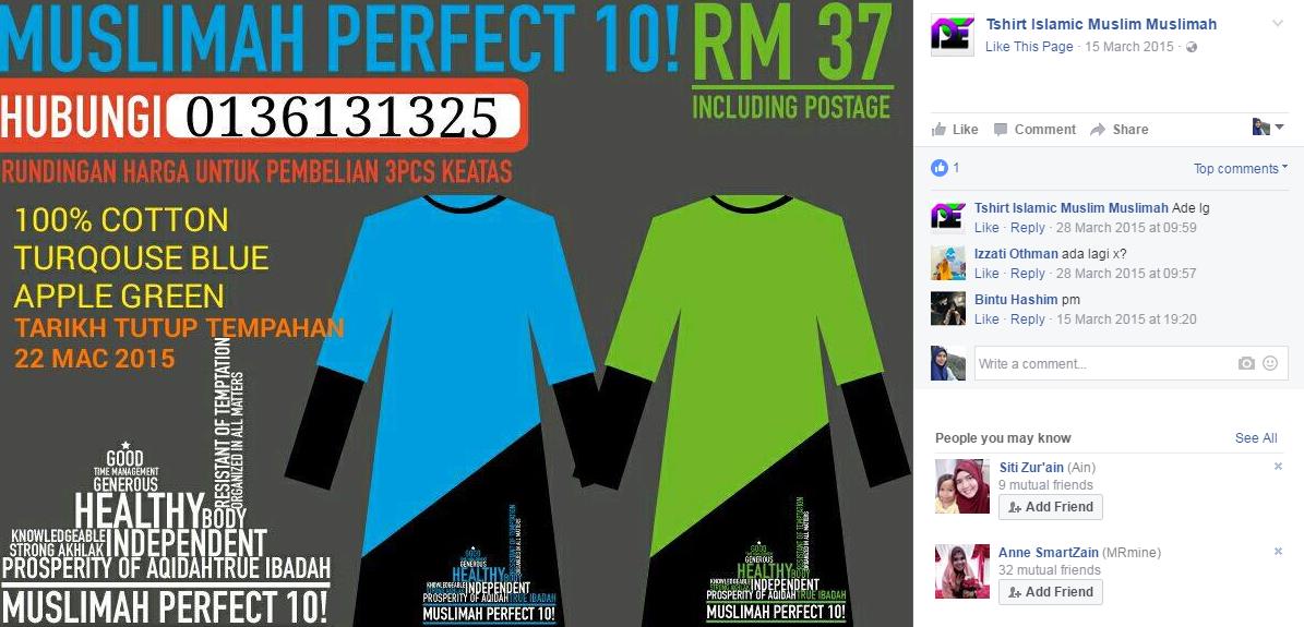 Usahawan dalam bidang penjualan t-shirt Islamic muslim muslimah