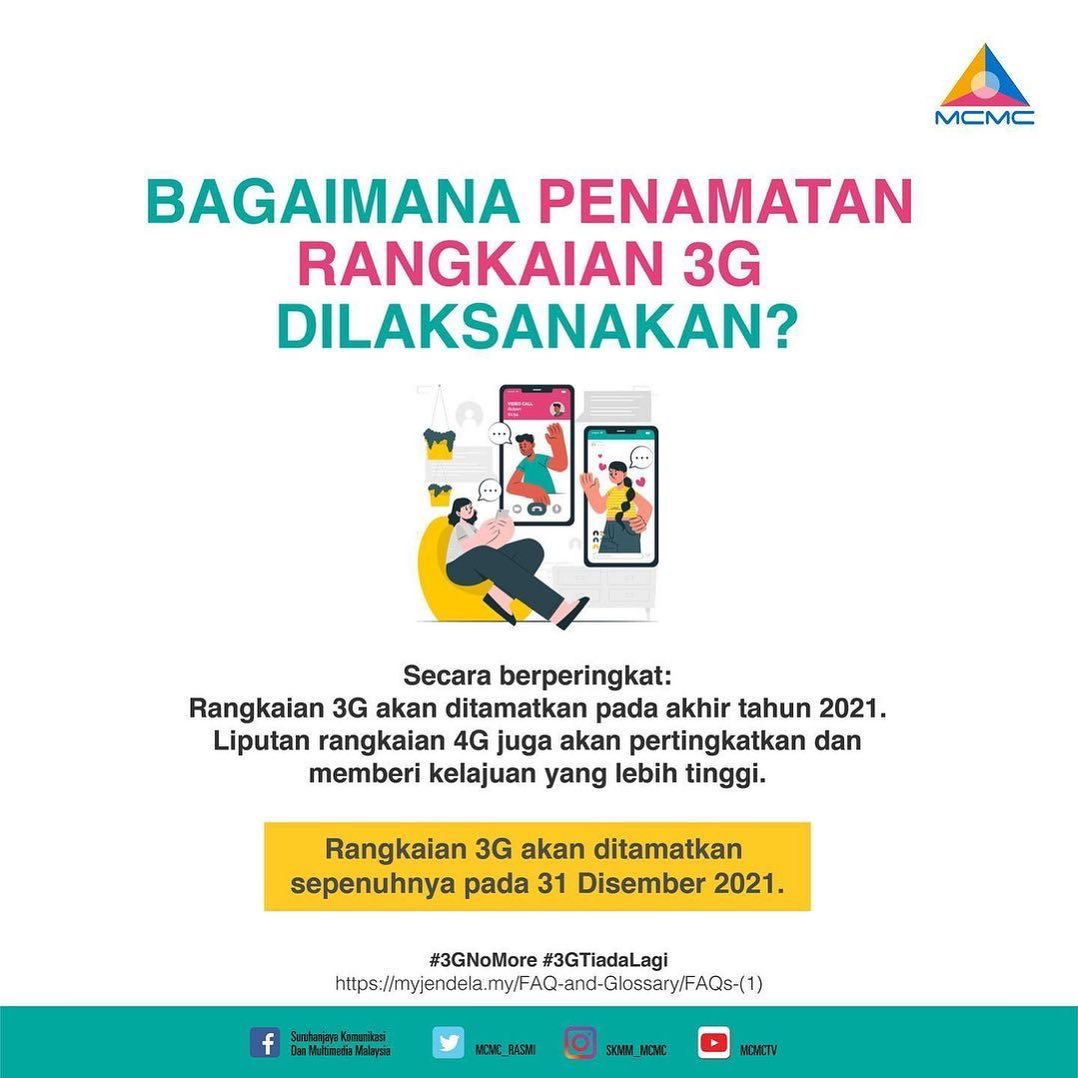 Rangkaian 3G akan ditamatkan secara berfasa dan tamat sepenuhnya pada 31 Dec 2021.