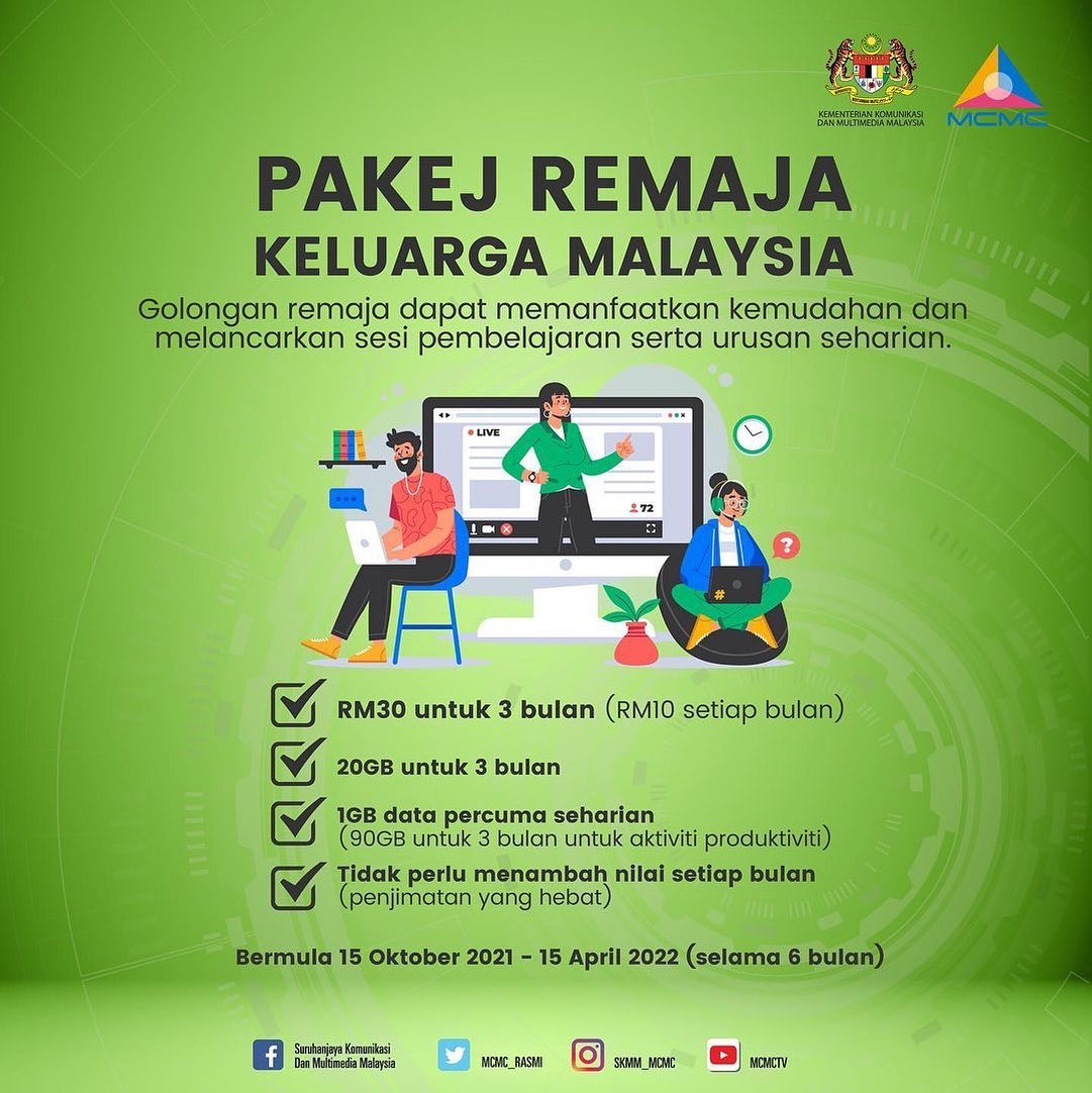 Pakej Remaja Keluarga Malaysia iaitu pakej prabayar yang bakal memberi manfaat kepada golongan para pelajar universiti untuk mereka menjalankan aktiviti pelajaran atau produktiviti. Pakej yang diumumkan ini bakal bermula 15 Oktober 2021 nanti.