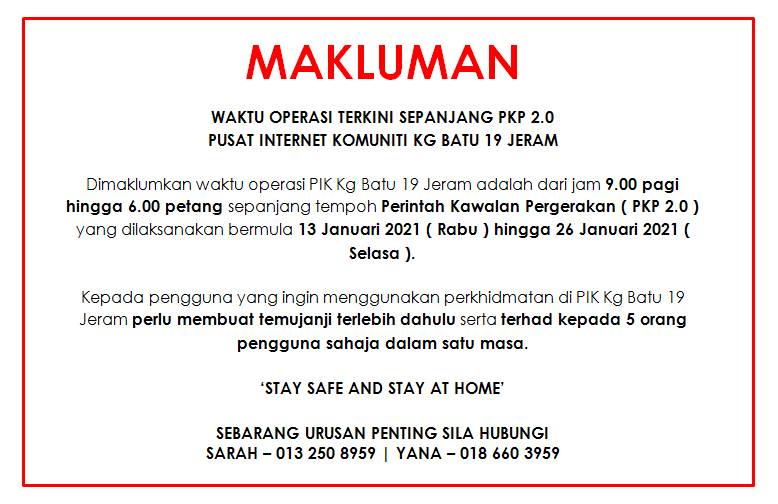 OPERASI TERKINI SEWAKTU PKP 2.0