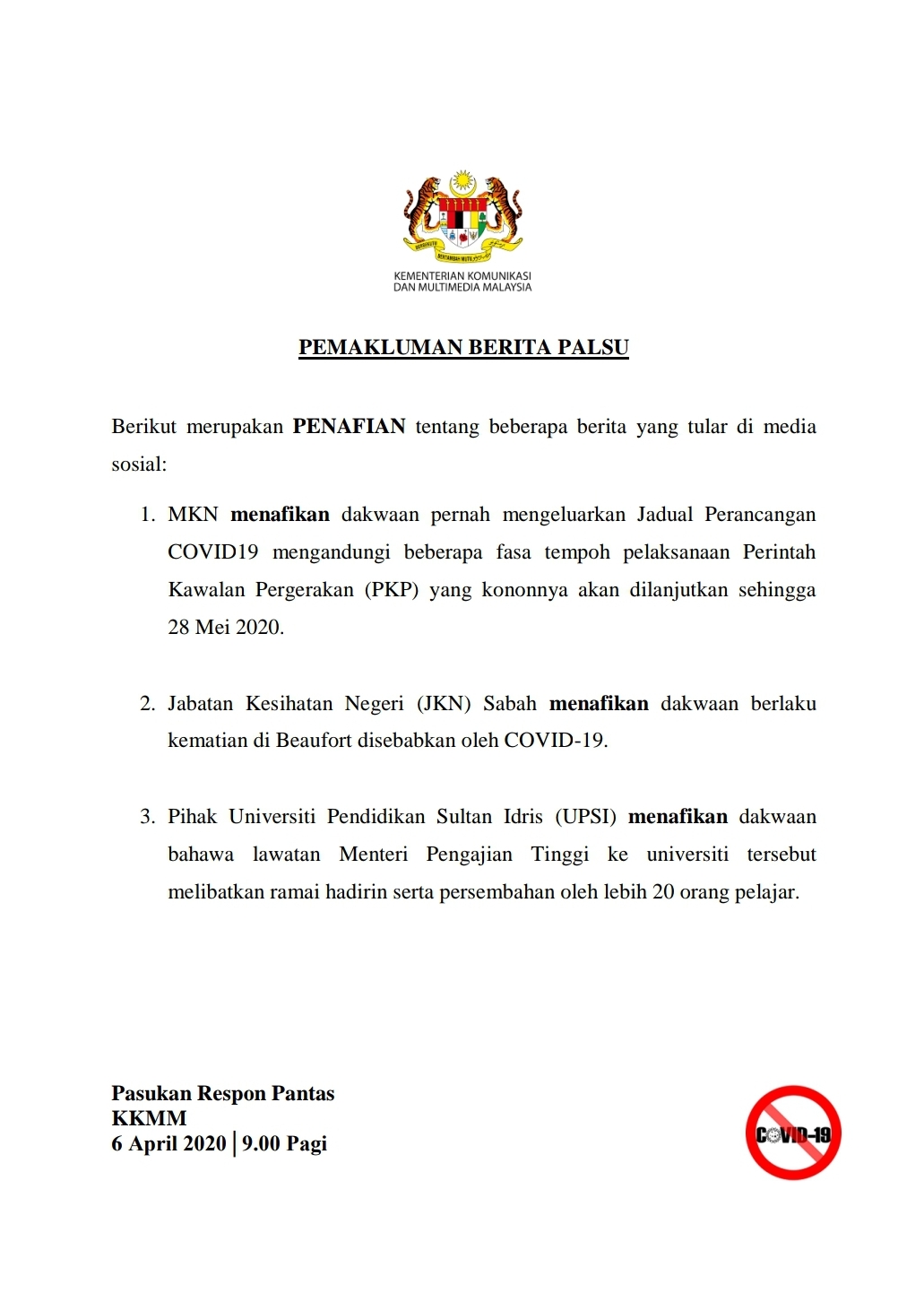PEMAKLUMAN BERITA PALSU