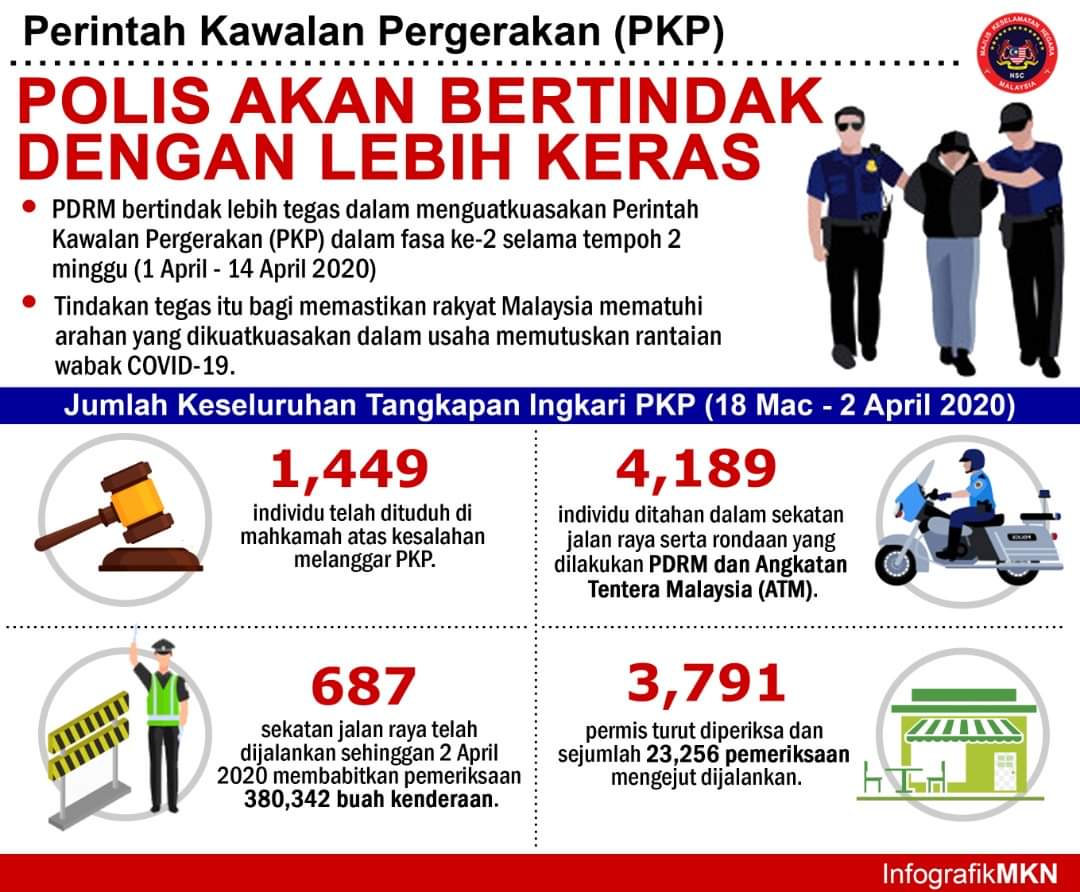 PKP FASA 2 : TINDAKAN LEBIH TEGAS Polis Diraja Malaysia (PDRM) kini bertindak lebih keras dalam menguatkuasakan Perintah Kawalan Pergerakan (PKP) yang telah memasuki fasa kedua. https://facebook.com/1452870318149203/posts/2330997560336470/…